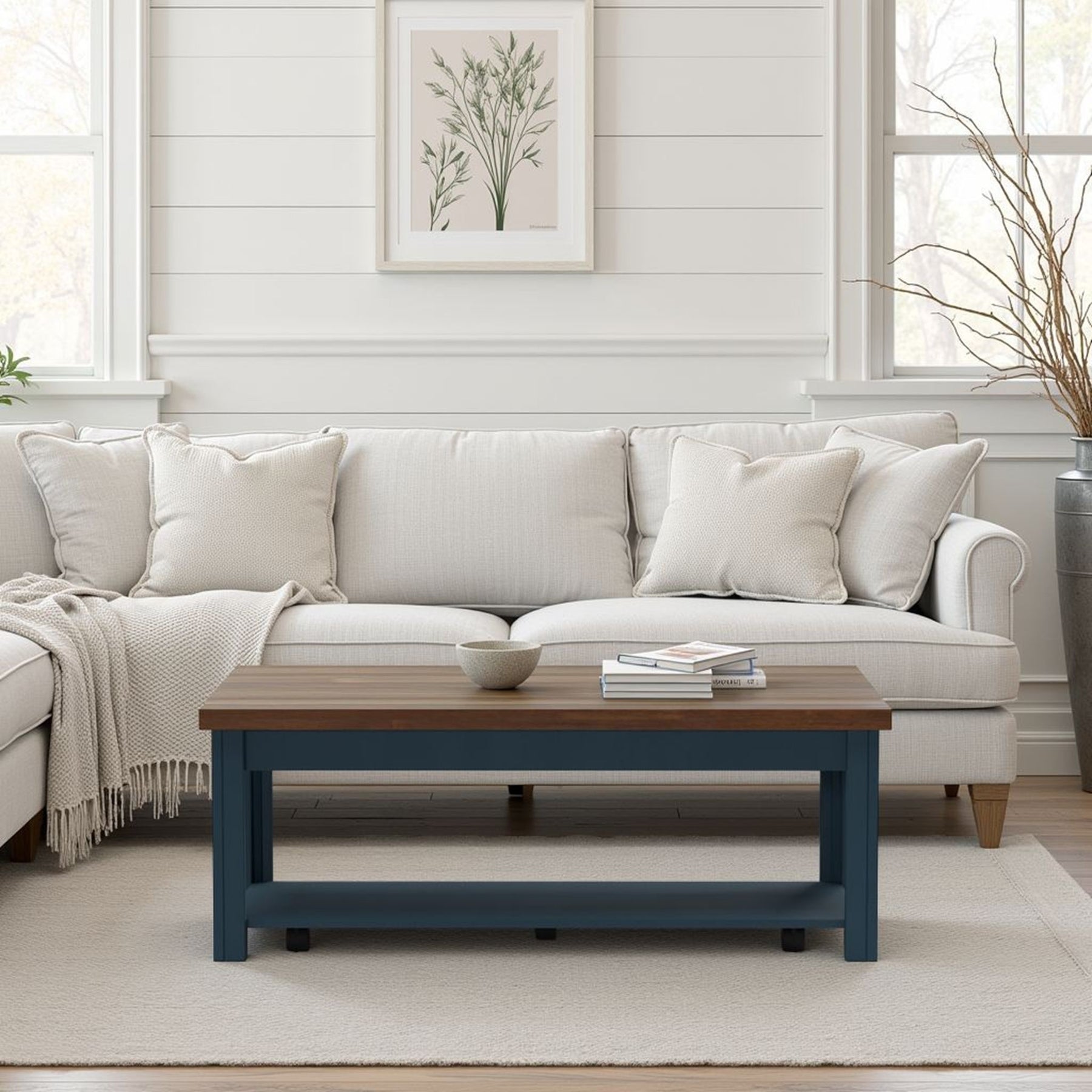 Nantucket - Chairside Table Wooden - Blue Denim, Whiskey