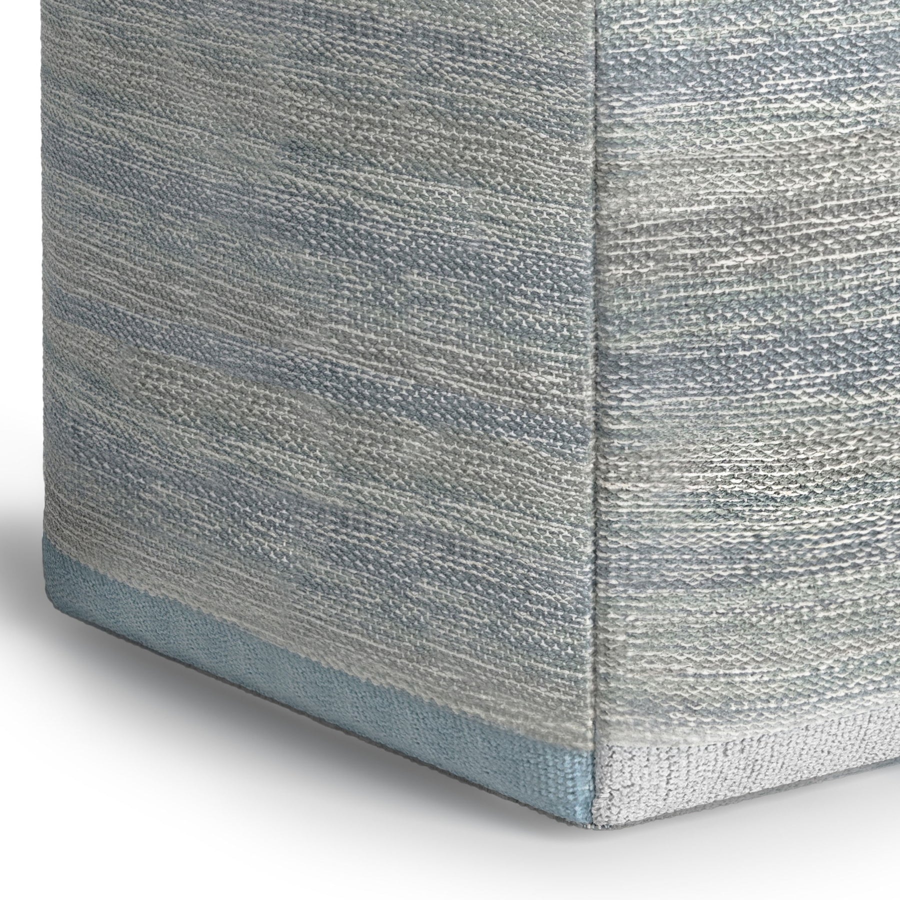 • Upholstered in a blue mélange pattern, hand woven cotton fabric