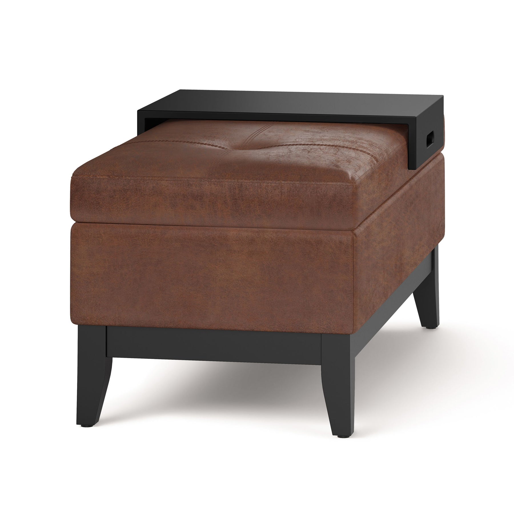 Oregon - Storage Ottoman Bench With Tray - Distressed Saddle Brown