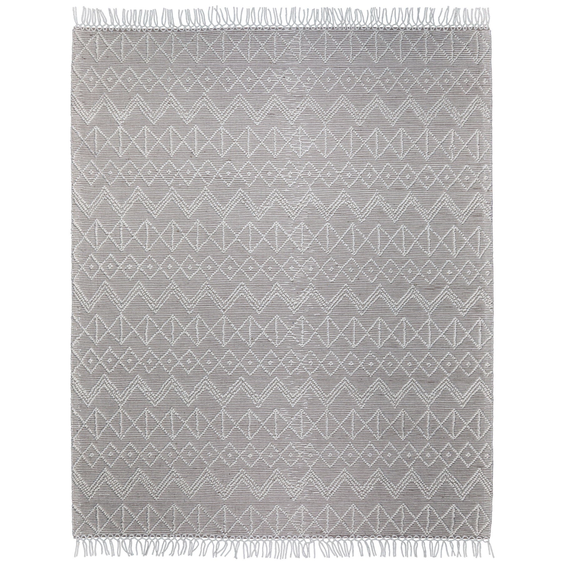 - Detailed with a geometric pattern in ivory and taupe featuring a hand-knotted fringe