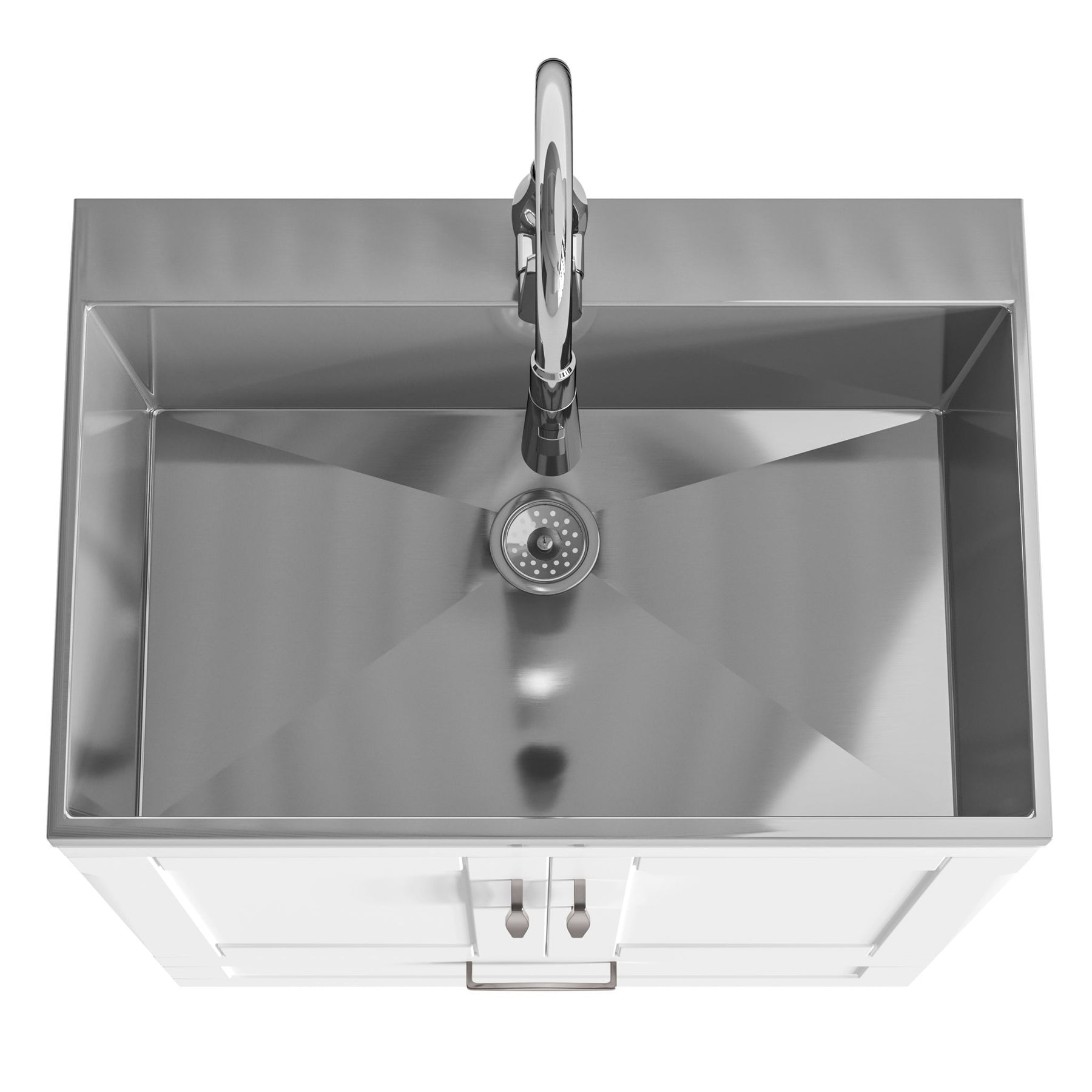 Reed - Deluxe Laundry Cabinet With Pull-Out Faucet And Stainless Steel Sink - White