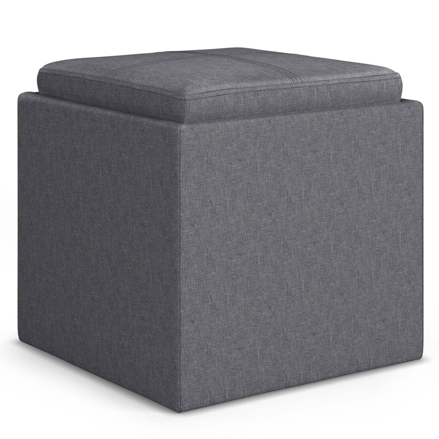 Rockwood - Cube Storage Ottoman With Tray - Slate Gray