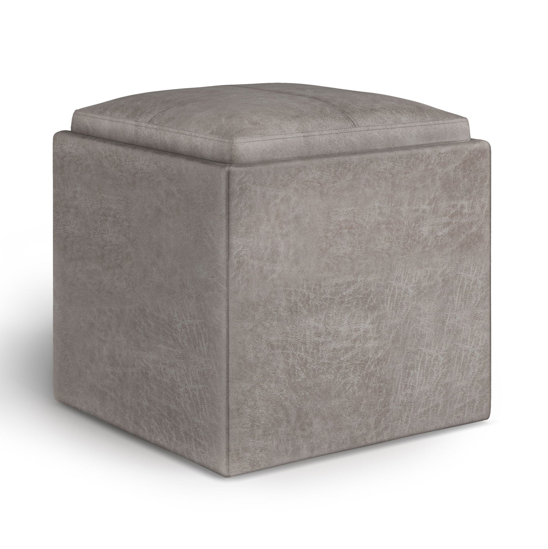 Rockwood - Cube Storage Ottoman With Tray - Distressed Gray Taupe