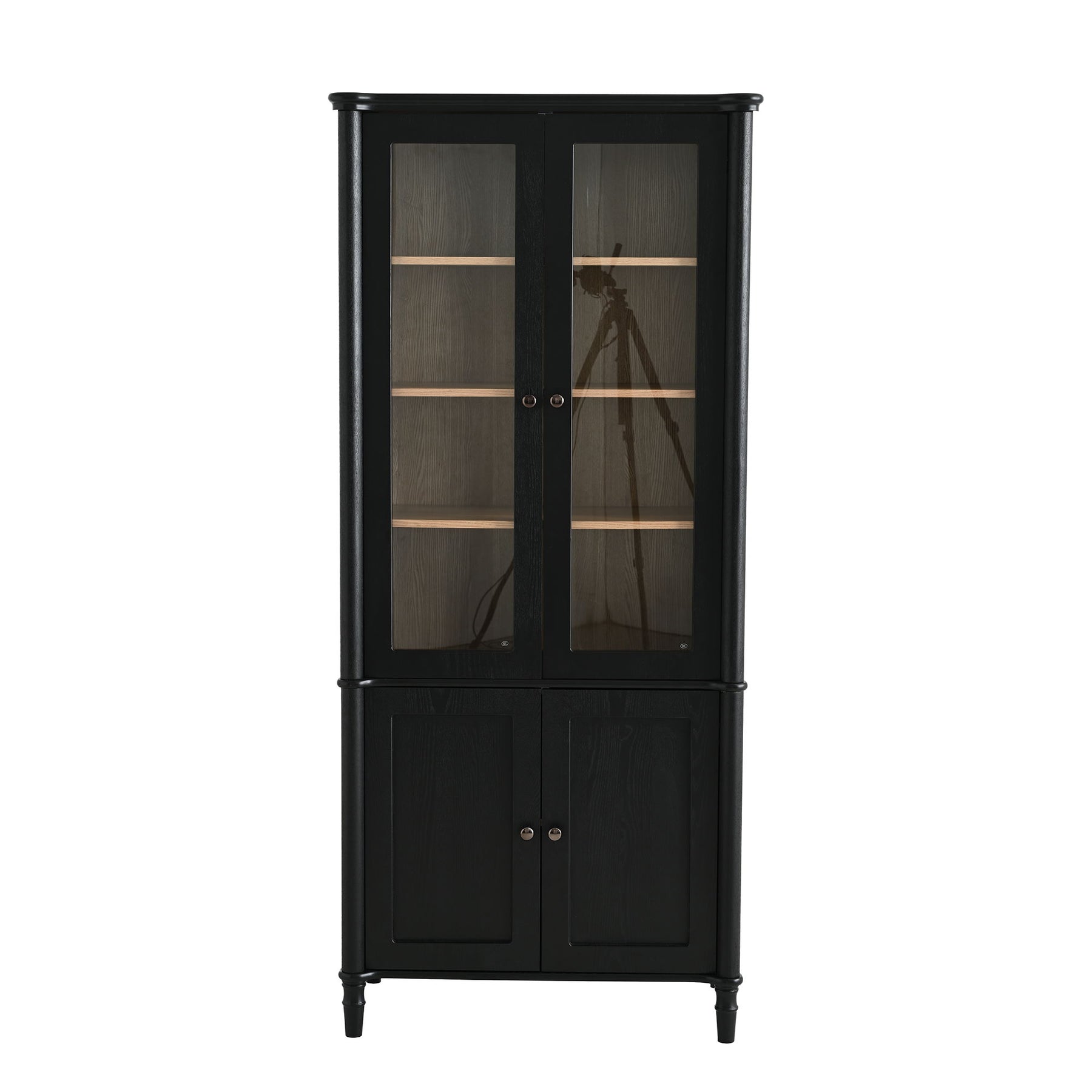 Vintage Display Cabinet With Double Glass Doors, Traditional Style For Collectibles, Ash Wood Veneer, 73.25" Tall - Black / Natural
