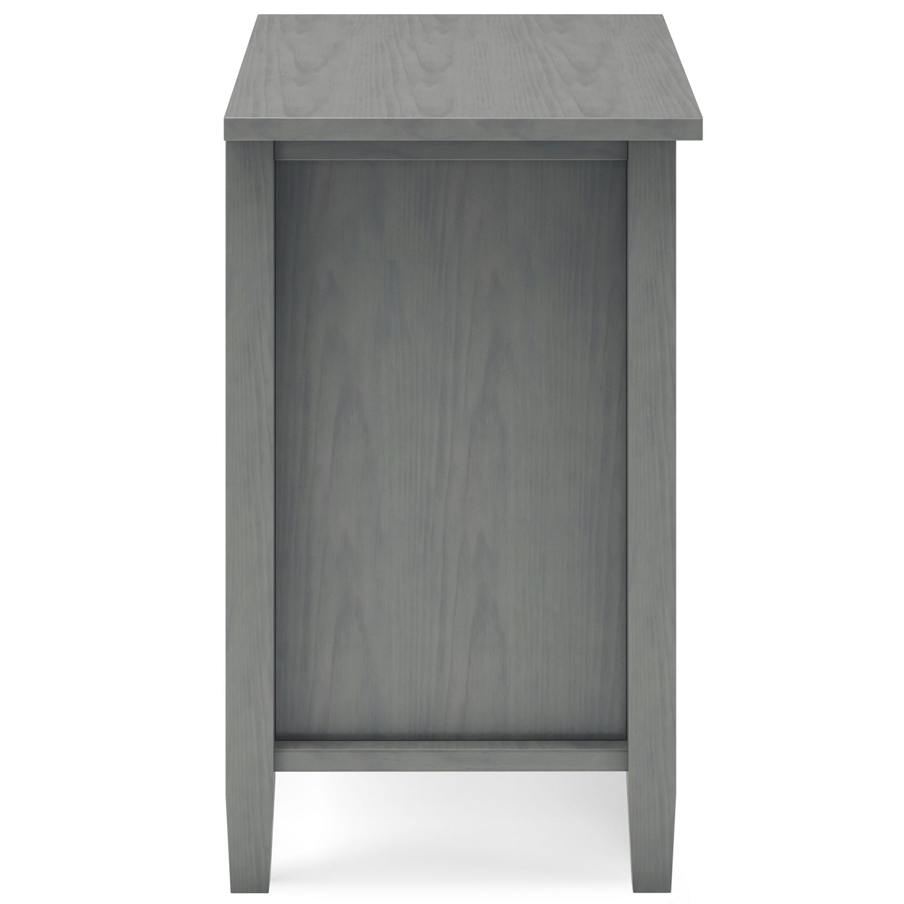 - Features two (2) spacious drawers, open bottom storage area, brushed nickel drawer pulls and metal drawer glides