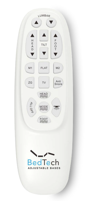 Elevate your sleep and your support with the BT6500 Adjustable Base from BedTech. Enjoy wireless remote control, head and foot adjustment, and advanced lumbar support to take absolute control of your support needs. With additional features such as USB charging ports, massage functions, preset positions and under bed LED lighting, this platform supports up to 850lbs and offers easy setup and a center folding design. Get the ultimate sleeping experience with the BT6500.